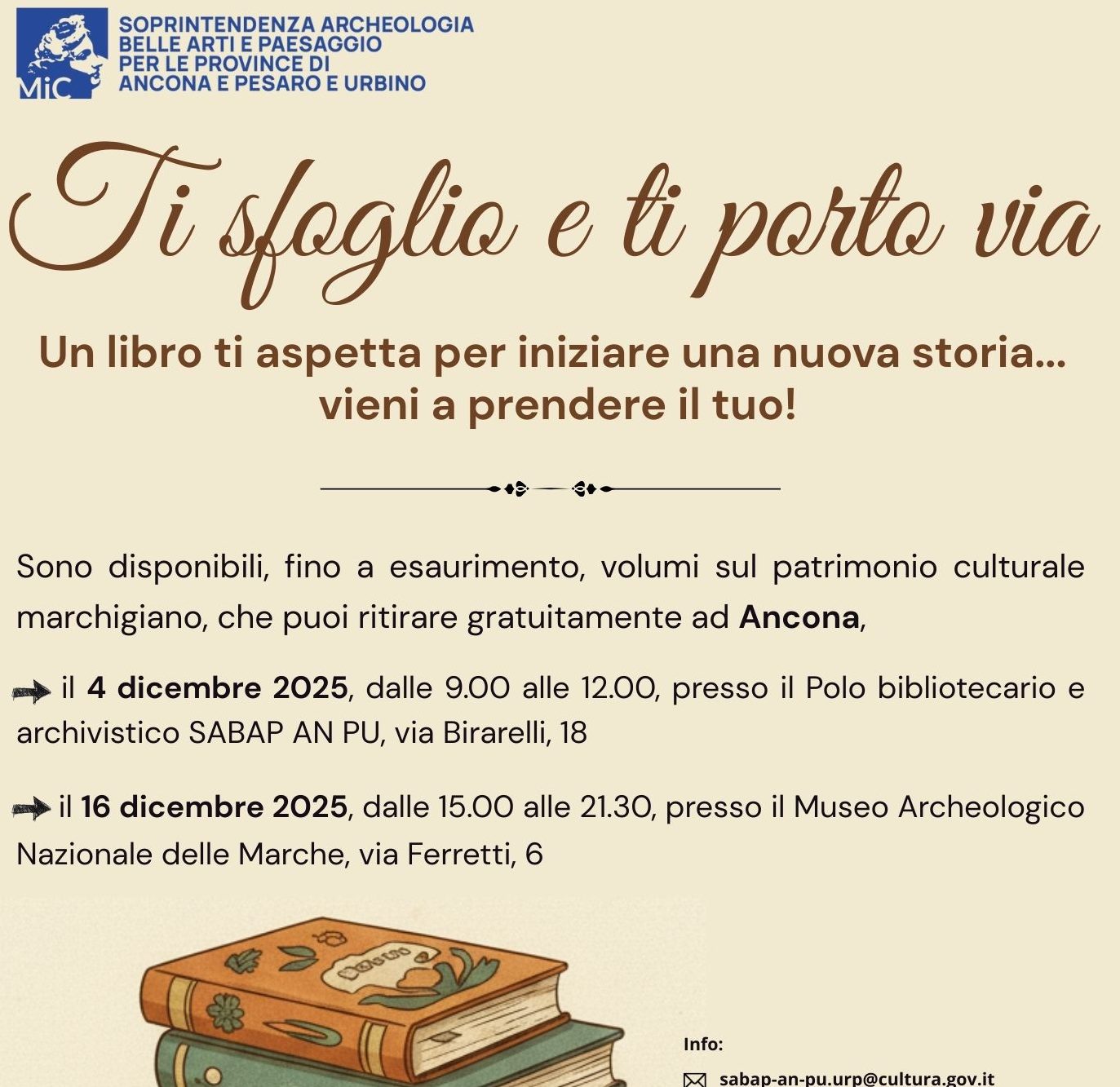 La Biblioteca della Soprintendenza ABAP AN PU,ย in collaborazione la ๐——๐—ถ๐—ฟ๐—ฒ๐˜‡๐—ถ๐—ผ๐—ป๐—ฒ ๐—ฅ๐—ฒ๐—ด๐—ถ๐—ผ๐—ป๐—ฎ๐—น๐—ฒ ๐— ๐˜‚๐˜€๐—ฒ๐—ถ ๐—ก๐—ฎ๐˜‡๐—ถ๐—ผ๐—ป๐—ฎ๐—น๐—ถ ๐— ๐—ฎ๐—ฟ๐—ฐ๐—ต๐—ฒ e ๐— ๐—”๐—ก๐—  mette a disposizione, fino a esaurimento, volumi sul patrimonio culturale marchigiano che possono essere ritirare gratuitamente ad ๐—”๐—ป๐—ฐ๐—ผ๐—ป๐—ฎ: