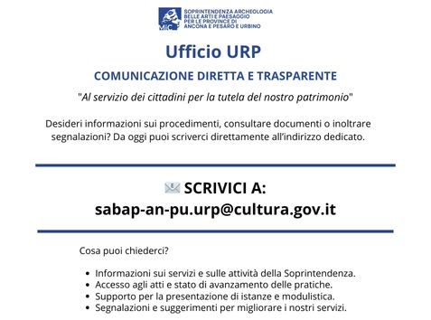Un servizio al cittadino per tutte le informazioni di carattere generale e i servizi forniti dalla Soprintendenza Archeologia Belle Arti e Paesaggio per le province di Pesaro e Urbino.
